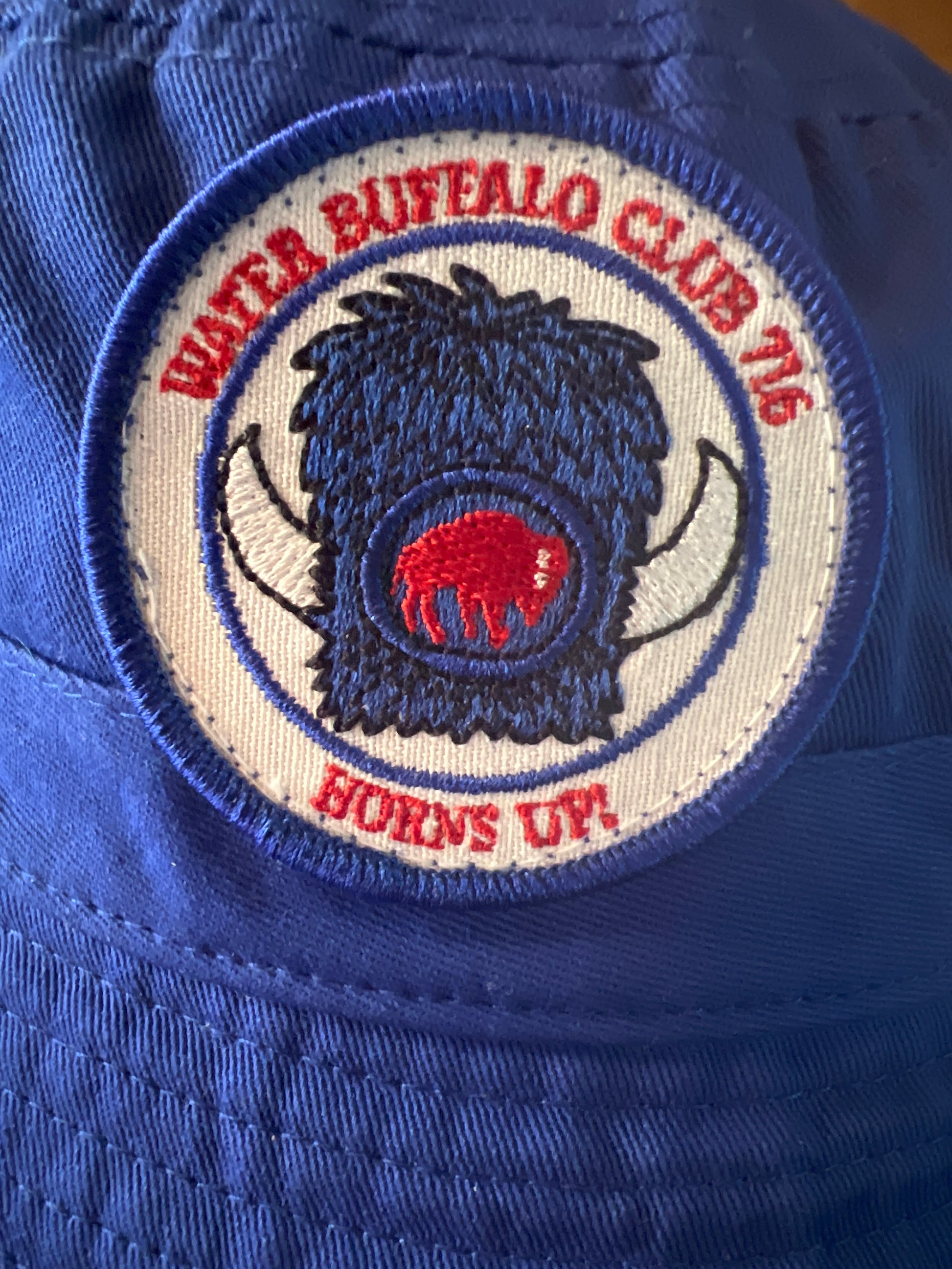 The Water Buffalo Club blue bucket hat has the signature Water Buffalo Club logo on it. It’s 100% washed cotton and fits most adult heads. It’s super cute and comfortable. It also has a sweatband for moisture wicking. It’s perfect for the beach, golf, fishing, and of course, a football game! It also has a hook and loop faster to adjust the size and has air flowing eyelets. Hand wash only.