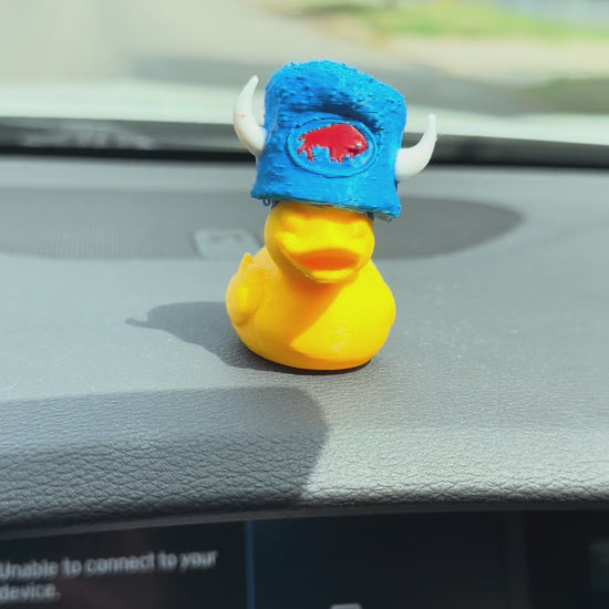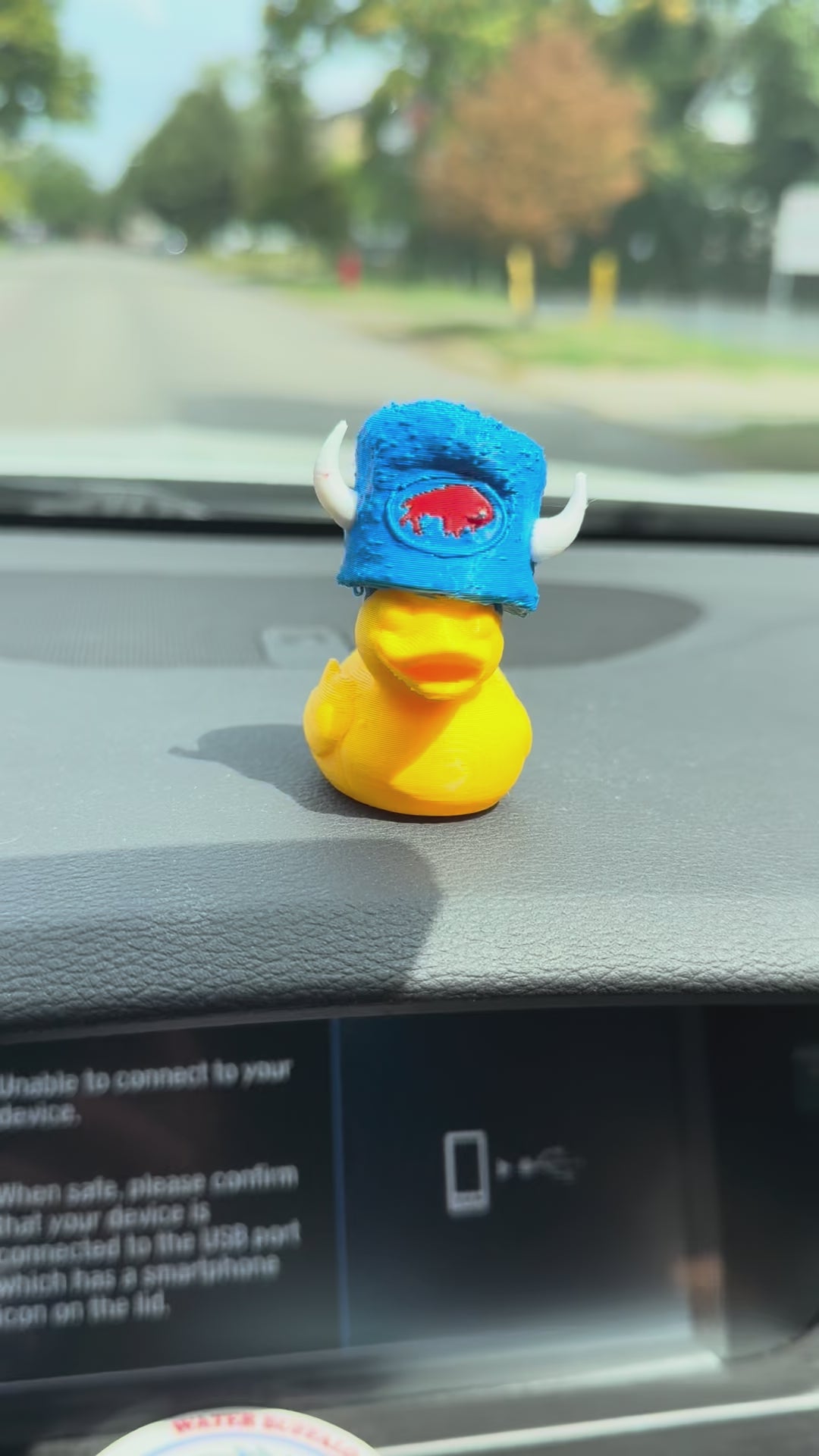 Introducing the Water Buffalo Club duck, Duckalo Bill, that will bring a touch of whimsy to your car, desk, or anywhere you choose to display it! This charming yellow duck, complete with a playful water buffalo hat, is crafted with care using a 3D printer right here in the USA. Its vibrant color and unique design are sure to spark joy and conversation. Perfect for adding a splash of personality to your space, this delightful decoration is not just an ornament—it’s a fun little piece of art that brightens up any environment!