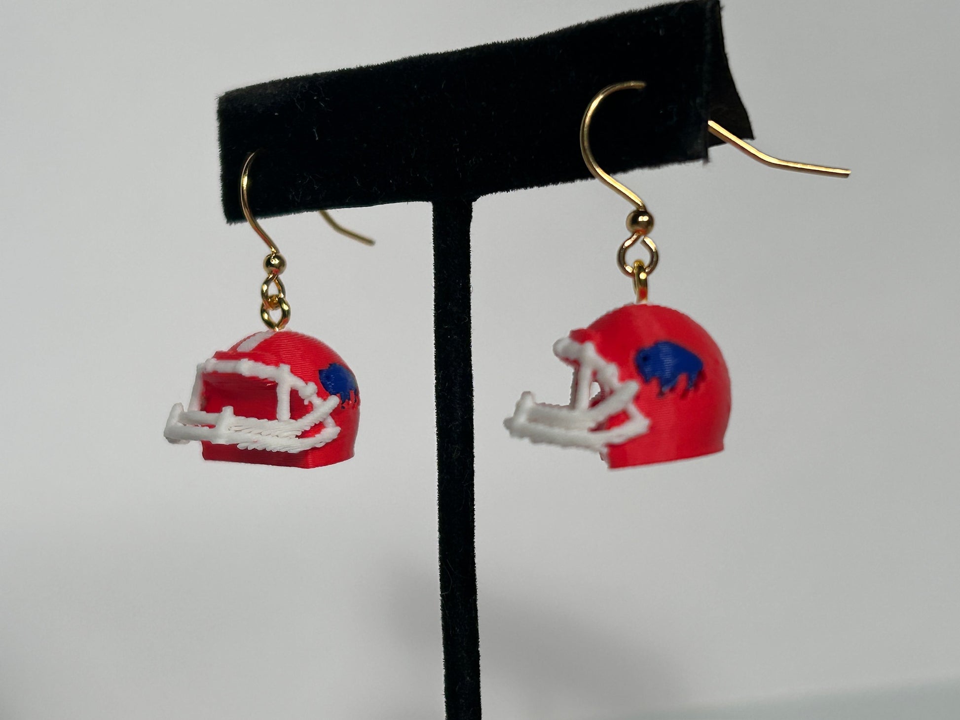 Approximately 1” replica of the WBC hat or helmet; made of 2 color plastic that spins around! Made with stainless steel fishhook style drop earrings.